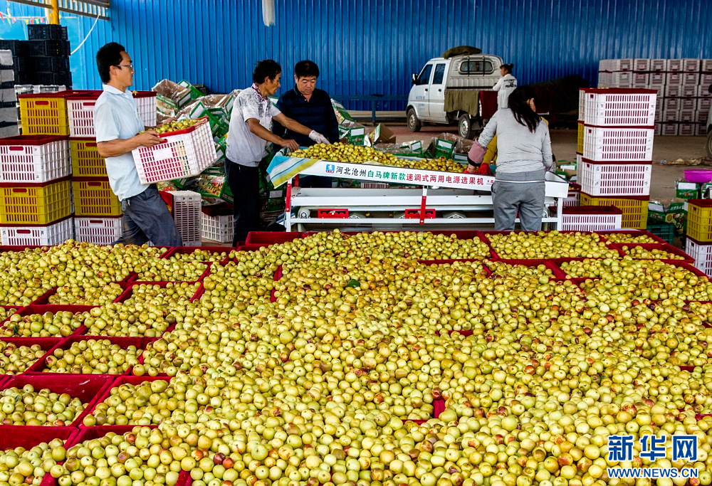 冬棗集散中心正在分選新鮮的大荔冬棗。新華網(wǎng)發(fā) 李建朝 攝