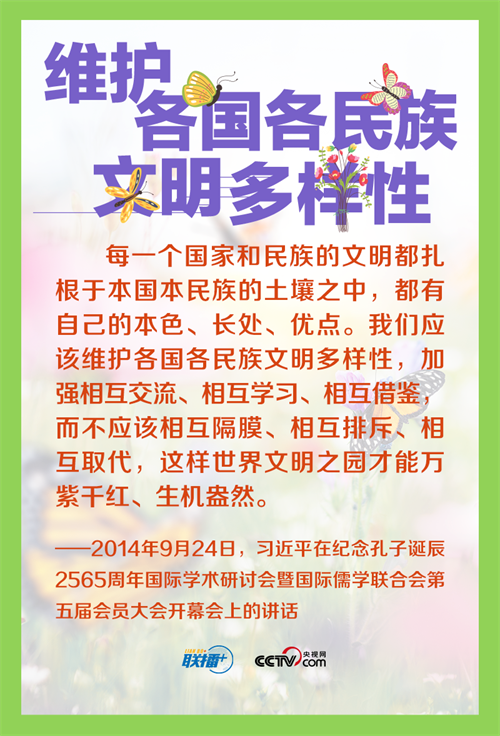 人類文明多樣性賦予這個(gè)世界姹紫嫣紅的色彩,多樣帶來(lái)交流,交流孕育融合,融合產(chǎn)生進(jìn)步。長(zhǎng)期以來(lái),習(xí)近平主席在不同場(chǎng)合多次倡導(dǎo)尊重世界文明多樣性,推動(dòng)不同文明交流對(duì)話、和平共處、和諧共生。讓我們一起來(lái)學(xué)習(xí)。
