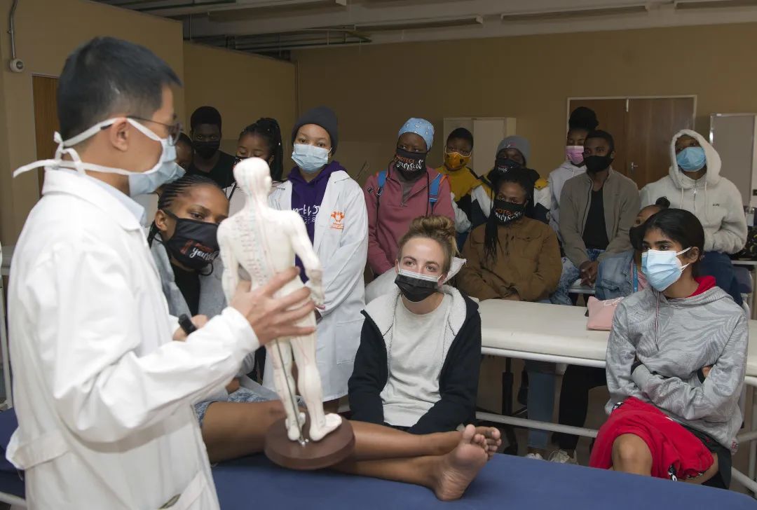 胡紫景在南非約翰內(nèi)斯堡大學上針灸課。(受訪者供圖)