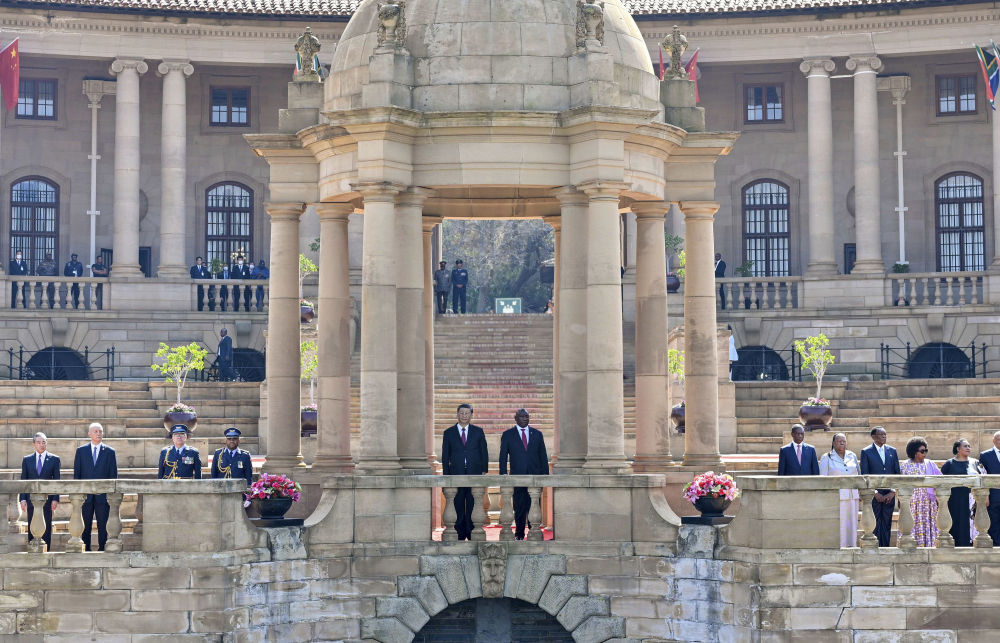 會(huì)談前,拉馬福薩在總統(tǒng)府廣場(chǎng)為習(xí)近平舉行歡迎儀式。