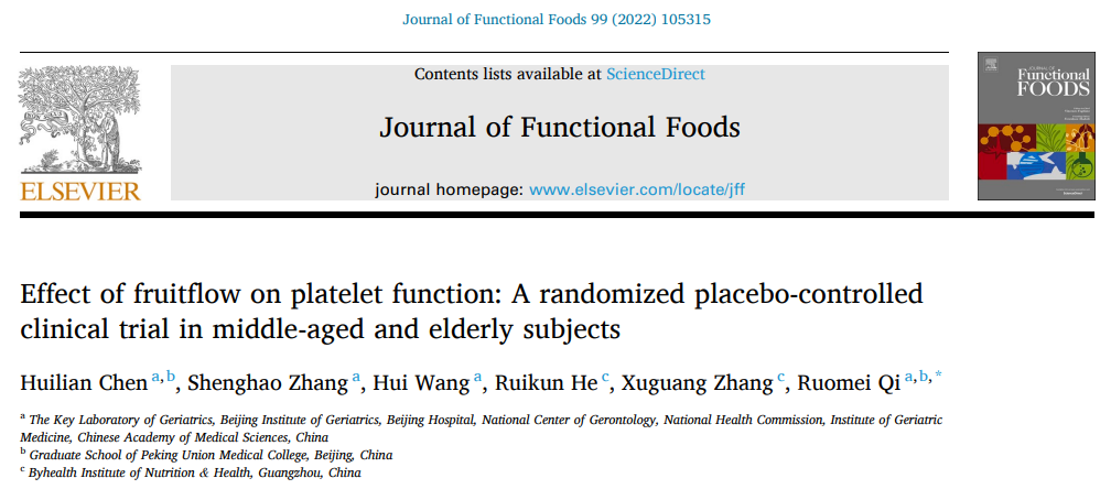此次湯臣倍健申報(bào)的新絡(luò)素片,以Fruitflow®(輕絡(luò)素)針對(duì)中國(guó)人群血流健康影響的臨床驗(yàn)證及相關(guān)機(jī)制研究,填補(bǔ)了國(guó)內(nèi)該功能評(píng)價(jià)體系的空白,研究成果相繼發(fā)表在《JournalofFunctionalFoods》《FrontiersinNutrition》等國(guó)際權(quán)威雜志。