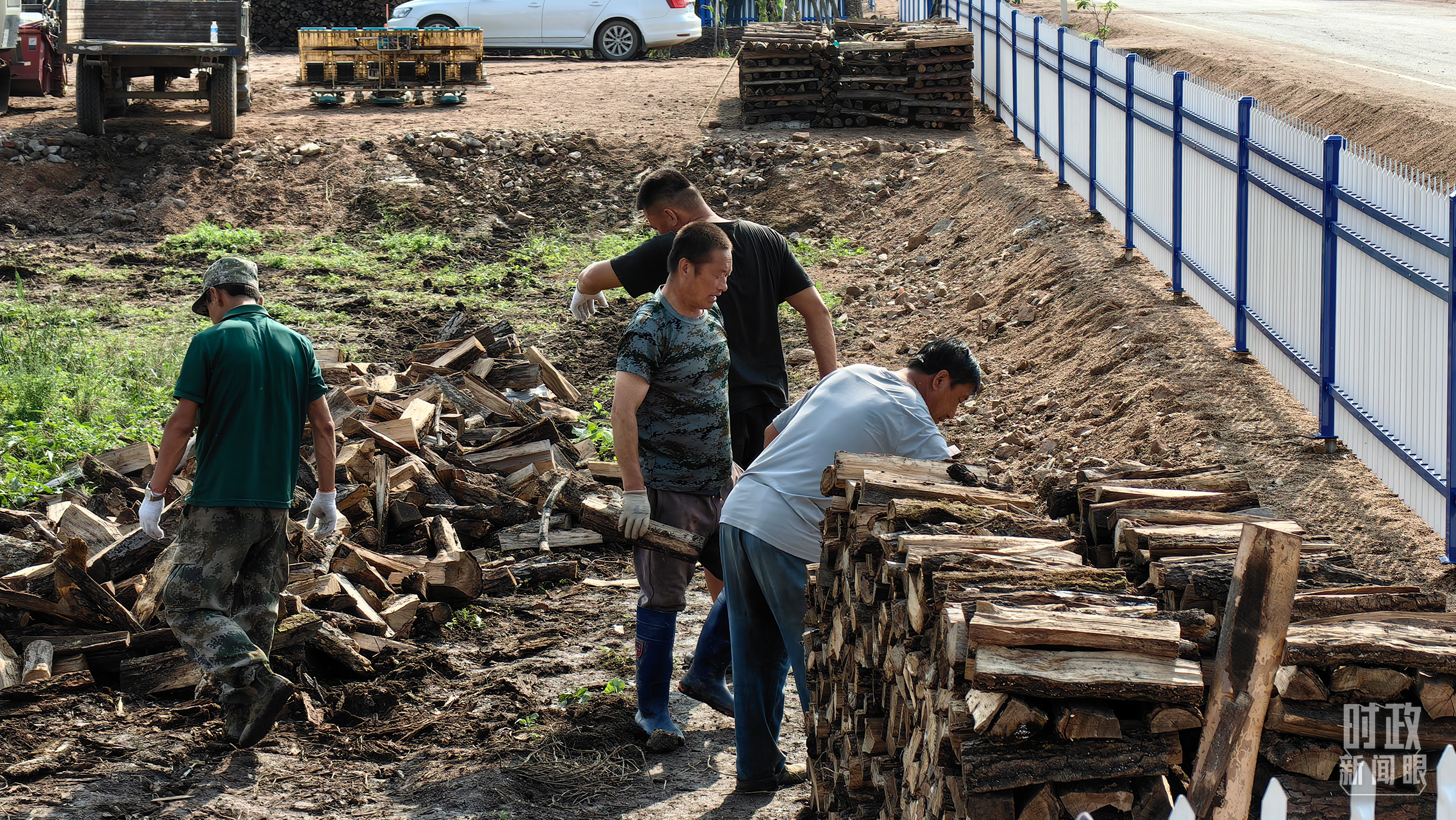 △村民正在整理家中被洪水沖垮的柴火垛。(總臺(tái)央廣記者潘毅拍攝)