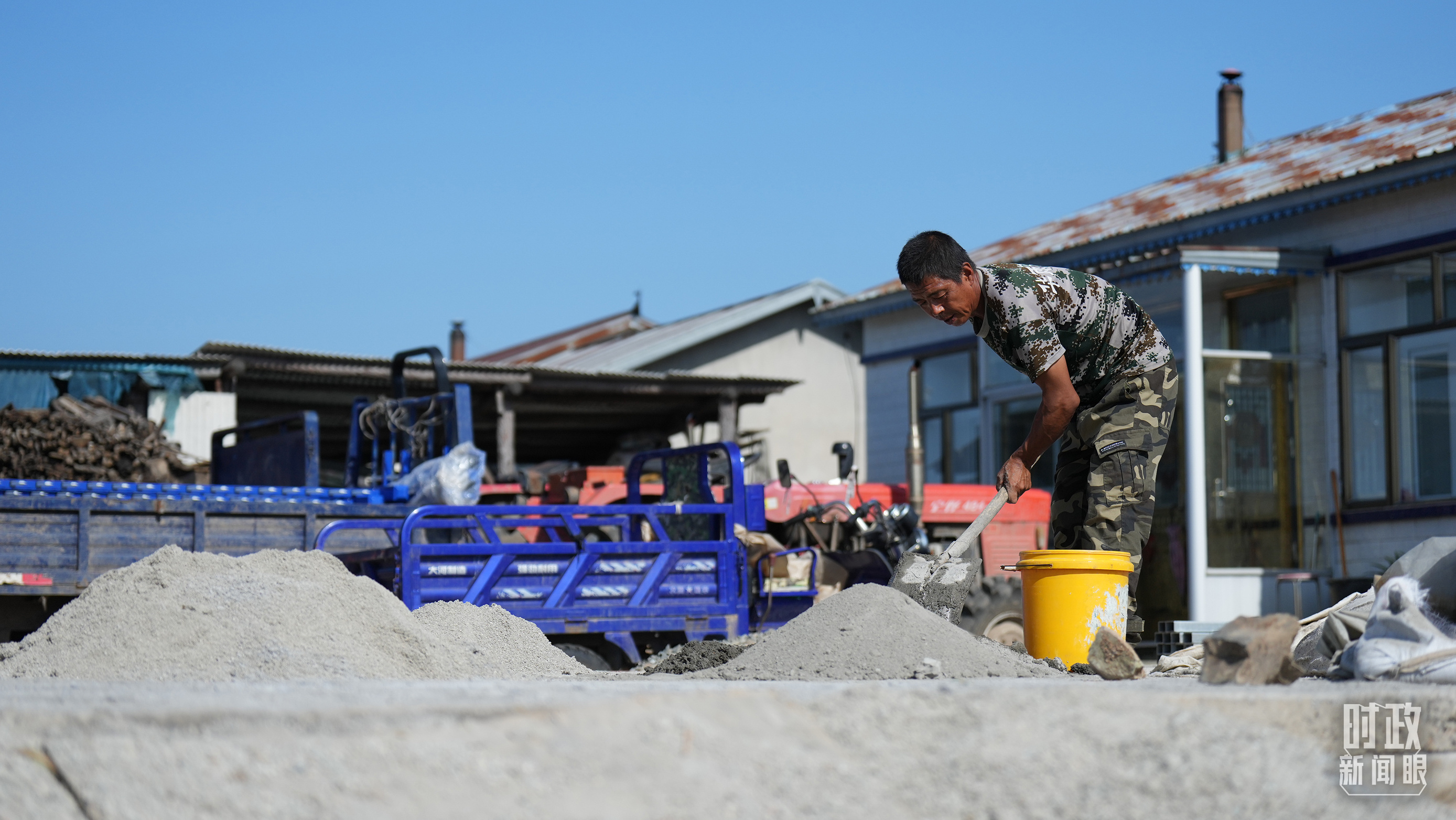 △村民正在修繕被損的房屋。(總臺央視記者薛冠南拍攝)