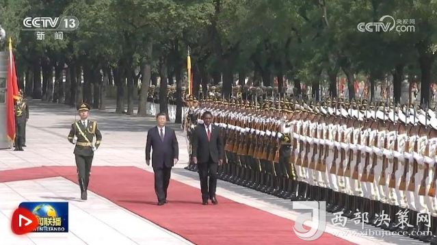 希奇萊馬在習(xí)近平陪同下檢閱中國(guó)人民解放軍儀仗隊(duì)。