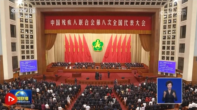 人民大會堂大禮堂燈光璀璨,氣氛隆重?zé)崃?。主席臺上方懸掛著“中國殘疾人聯(lián)合會第八次全國代表大會”的會標(biāo),后幕正中的中國殘聯(lián)會徽格外醒目,10面紅旗分列兩側(cè)。二樓眺臺上懸掛著“以習(xí)近平新時(shí)代中國特色社會主義思想為指導(dǎo),全面貫徹黨的二十大精神,團(tuán)結(jié)帶領(lǐng)廣大殘疾人在中國式現(xiàn)代化進(jìn)程中創(chuàng)造更加幸福美好的生活!”巨型橫幅。來自全國各地的600多名代表,肩負(fù)著約8500萬殘疾人的重托出席大會。