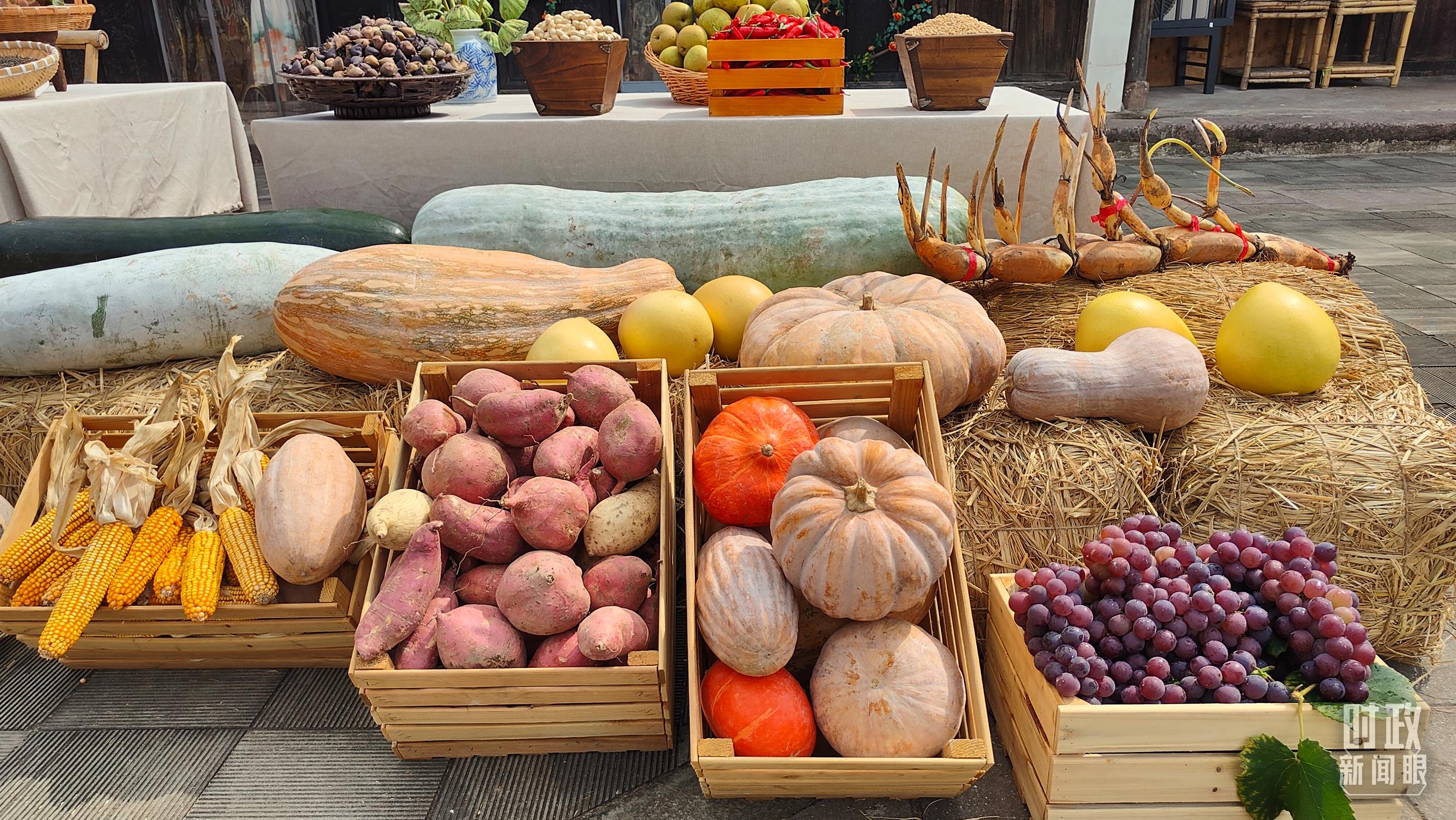 △村廣場“共富市集”,擺放著種類豐富的特色農(nóng)產(chǎn)品。(總臺央視記者楊立峰拍攝)
