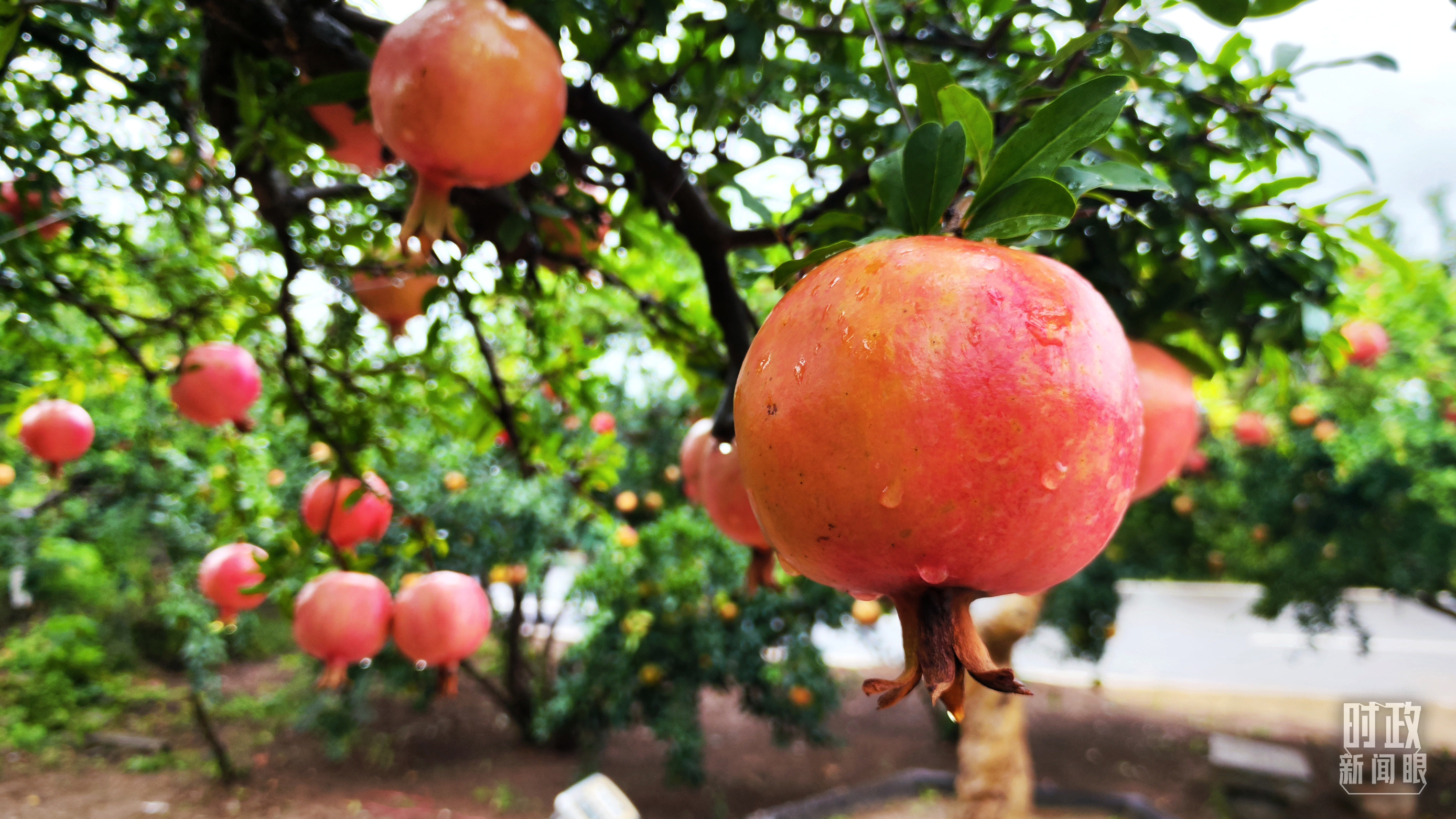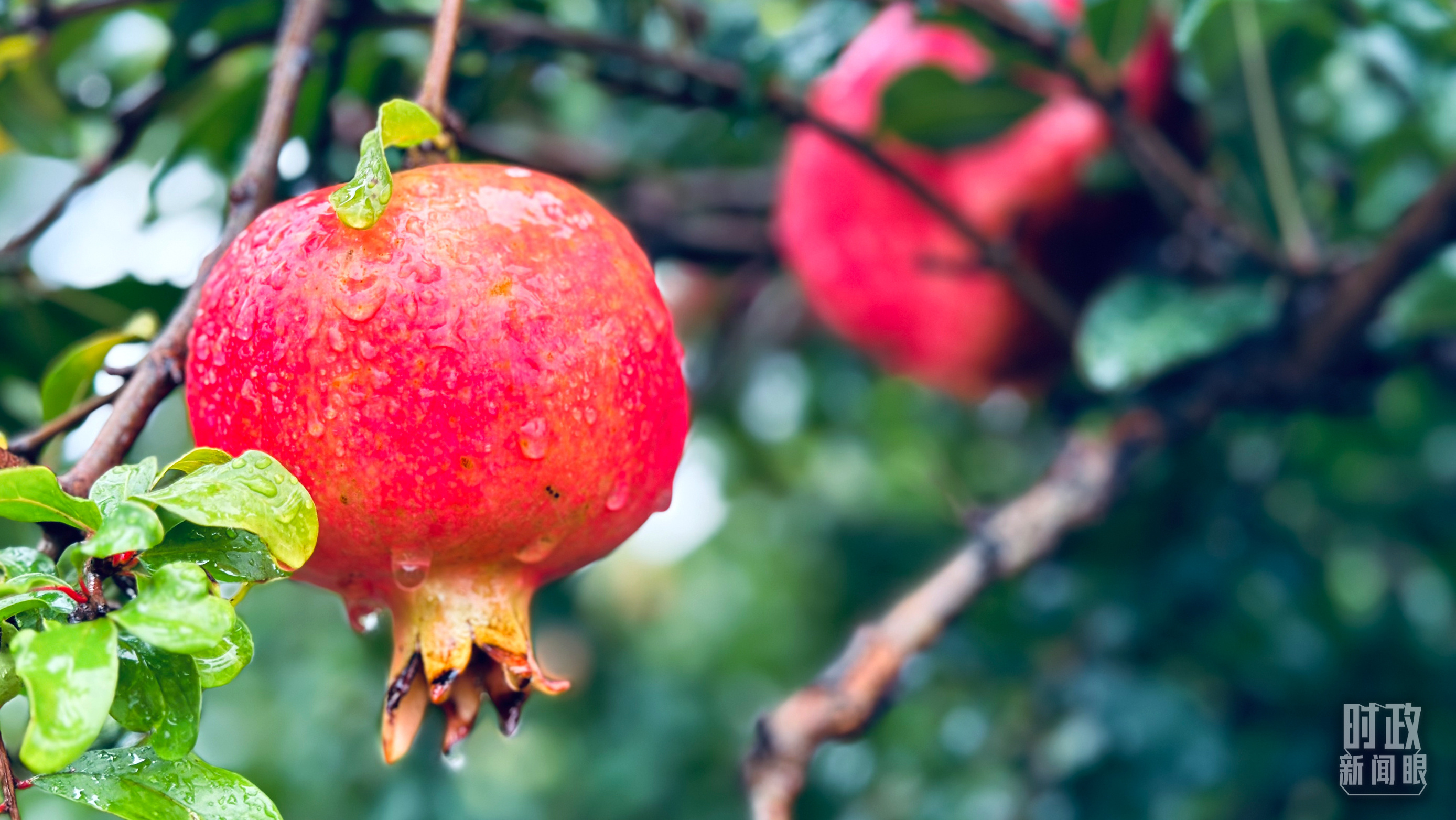 △一場(chǎng)秋雨過(guò)后,石榴更顯晶瑩。(總臺(tái)央視記者李輝、范一鳴拍攝)