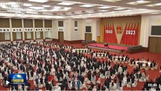 今年這場招待會的名稱是慶祝中華人民共和國成立74周年招待會,習(xí)近平總書記在招待會上發(fā)表重要講話。