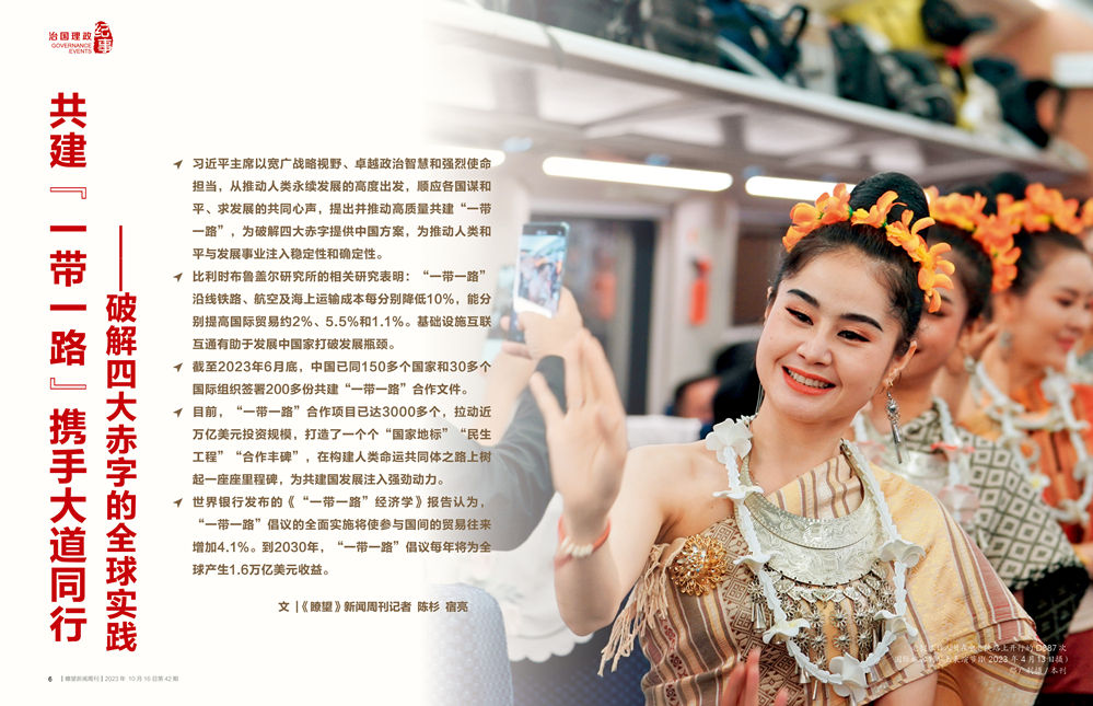 以加強(qiáng)互聯(lián)互通為重點(diǎn),共建“一帶一路”倡議助力各國(guó)共同發(fā)展:哈薩克斯坦產(chǎn)品在中國(guó)連云港找到出???,2022年中哈兩國(guó)鐵路貨運(yùn)量達(dá)2300萬噸,同比增長(zhǎng)20%;中老鐵路將老撾從“陸鎖國(guó)”變成“陸聯(lián)國(guó)”,累計(jì)運(yùn)客超2100萬人次、運(yùn)貨超2600萬噸;蒙內(nèi)鐵路建成通車以來平均上座率超過90%,為肯尼亞創(chuàng)造近5萬個(gè)就業(yè)崗位;“空中絲綢之路”建設(shè)成效顯著,中國(guó)與57個(gè)共建國(guó)家實(shí)現(xiàn)空中直航……伴隨著“一帶一路”畫卷翻越山海徐徐鋪展,多國(guó)基建水平不斷提升,就業(yè)機(jī)遇實(shí)現(xiàn)飛躍,發(fā)展條件由此改善,地區(qū)民眾福祉不斷增益。目前,“一帶一路”合作項(xiàng)目已達(dá)3000多個(gè),拉動(dòng)近萬億美元投資規(guī)模,打造了一個(gè)個(gè)“國(guó)家地標(biāo)”“民生工程”“合作豐碑”,在構(gòu)建人類命運(yùn)共同體之路上樹起一座座里程碑,為共建國(guó)發(fā)展注入強(qiáng)勁動(dòng)力。