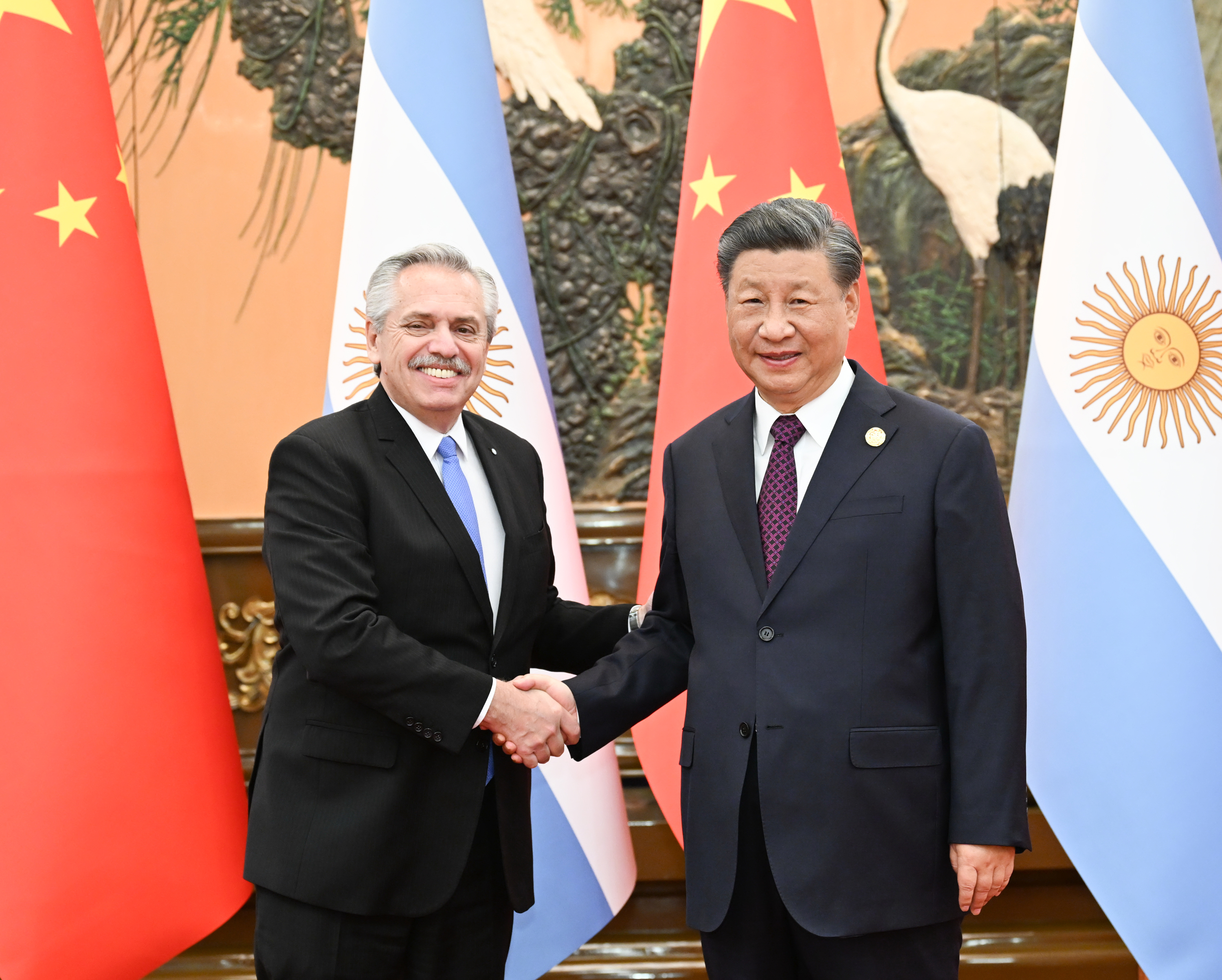 習(xí)近平指出,中阿建交50多年來(lái),雙方始終相互尊重、平等相待、互利共贏。近年來(lái),在我們共同引領(lǐng)下,中阿關(guān)系不斷邁上新臺(tái)階。中阿同為發(fā)展中大國(guó),都肩負(fù)著推動(dòng)國(guó)家發(fā)展振興、實(shí)現(xiàn)人民對(duì)美好生活向往、維護(hù)國(guó)際公平正義的歷史使命。中方愿同阿方一道,加強(qiáng)戰(zhàn)略對(duì)接,推動(dòng)中阿關(guān)系行穩(wěn)致遠(yuǎn),樹(shù)立全球南方國(guó)家團(tuán)結(jié)合作的典范。中方支持阿根廷維護(hù)經(jīng)濟(jì)金融穩(wěn)定,愿同阿方分享發(fā)展機(jī)遇,推動(dòng)高質(zhì)量共建“一帶一路”,深化農(nóng)業(yè)、基礎(chǔ)設(shè)施等領(lǐng)域務(wù)實(shí)合作。中方愿進(jìn)口更多阿根廷優(yōu)質(zhì)產(chǎn)品,鼓勵(lì)更多中國(guó)企業(yè)赴阿投資。
