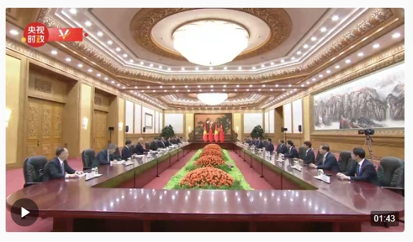 10月20日上午,國家主席習(xí)近平在人民大會(huì)堂會(huì)見來華出席第三屆“一帶一路”國際合作高峰論壇的越南國家主席武文賞。