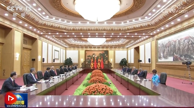 10月20日上午,國(guó)家主席習(xí)近平在人民大會(huì)堂會(huì)見來(lái)華出席第三屆“一帶一路”國(guó)際合作高峰論壇的斯里蘭卡總統(tǒng)維克拉馬辛哈。