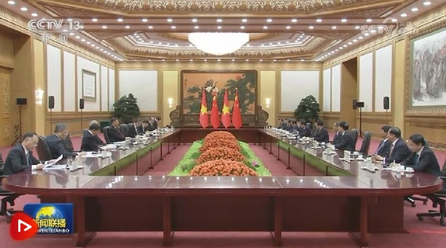 習(xí)近平強(qiáng)調(diào),中越都堅(jiān)持以人民為中心的發(fā)展理念,雙方要保持戰(zhàn)略溝通,互學(xué)互鑒,推進(jìn)適合本國(guó)國(guó)情的興國(guó)之策和強(qiáng)國(guó)之路。雙方要秉持共商共建共享原則,充分發(fā)揮地緣相近、產(chǎn)業(yè)互補(bǔ)優(yōu)勢(shì),加快推動(dòng)共建“一帶一路”倡議和“兩廊一圈”對(duì)接,重點(diǎn)推進(jìn)互聯(lián)互通等戰(zhàn)略領(lǐng)域合作,加強(qiáng)電子商務(wù)等新興領(lǐng)域合作,中方愿繼續(xù)擴(kuò)大進(jìn)口越南優(yōu)質(zhì)產(chǎn)品。雙方要繼續(xù)拉近兩國(guó)民間、地方特別是年輕一代的友好感情,讓兩國(guó)傳統(tǒng)友誼世代相傳。