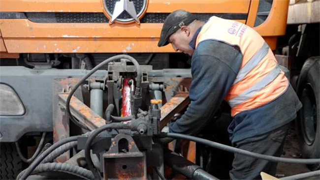 同時,車隊維修班組也在加緊對所有車輛進行全面健康“大體檢”。車庫內,維護人員正在對設備車輛的傳動軸、液壓、制動、電路等進行重點保養(yǎng)、檢修,針對老化損壞的線路和設備零部件進行維修更換。