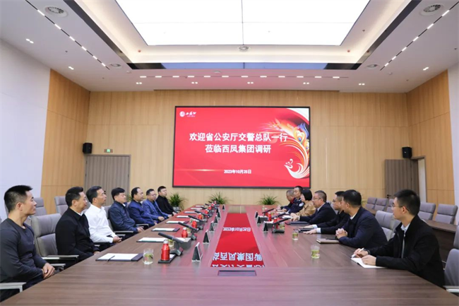 西部決策網(wǎng)訊(記者劉玉 韓宗憲 通訊員 宋小鵬) 10月25日,陜西省公安廳交通管理局(交通警察總隊(duì))局長(zhǎng)(總隊(duì)長(zhǎng))劉偉一行蒞臨西鳳集團(tuán)公司調(diào)研。西鳳集團(tuán)公司黨委書(shū)記、董事長(zhǎng)、股份公司董事長(zhǎng)張正,西鳳集團(tuán)公司黨委副書(shū)記、總裁楊宏亮,西鳳股份公司總工程師馮雅芳陪同調(diào)研。