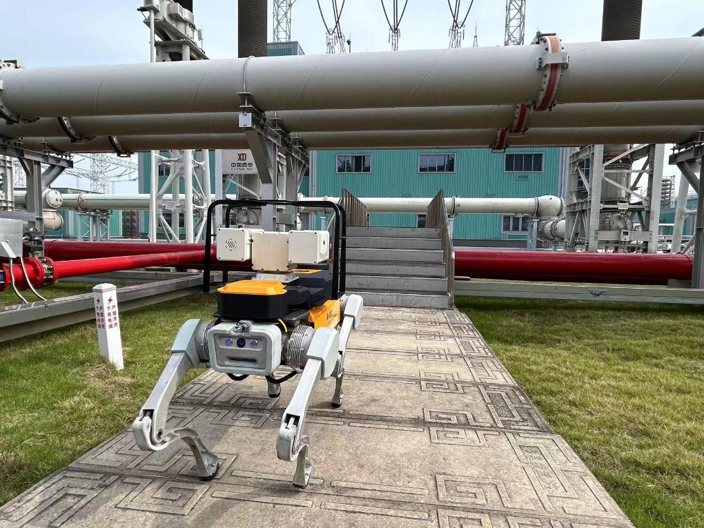 正在古泉換流站設備區(qū)域內(nèi)作業(yè)的四足機器狗。新華社記者吳慧珺 攝