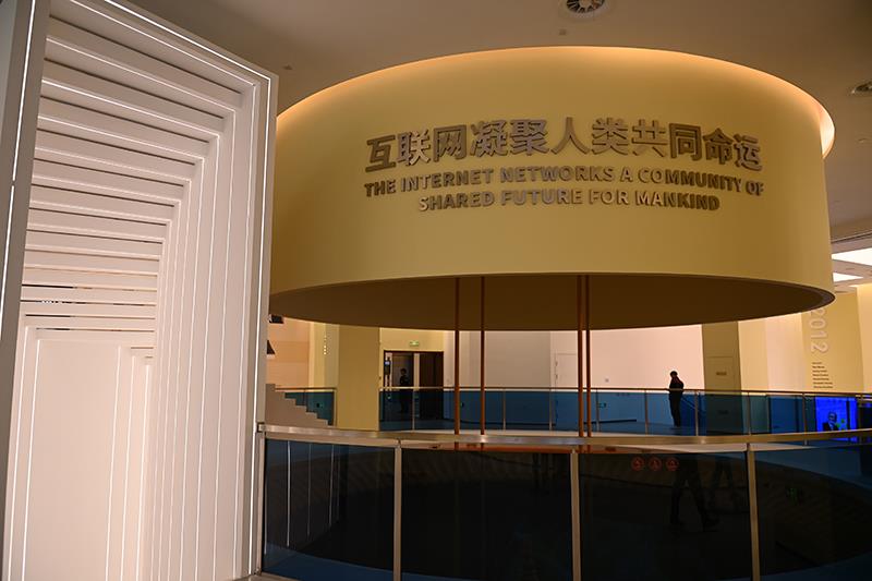△2023年11月7日,以互聯(lián)網(wǎng)為主題的大型科技館——烏鎮(zhèn)世界互聯(lián)網(wǎng)科技館在浙江烏鎮(zhèn)正式開館。圖為該館“互聯(lián)網(wǎng)凝聚人類共同命運(yùn)”展區(qū)。