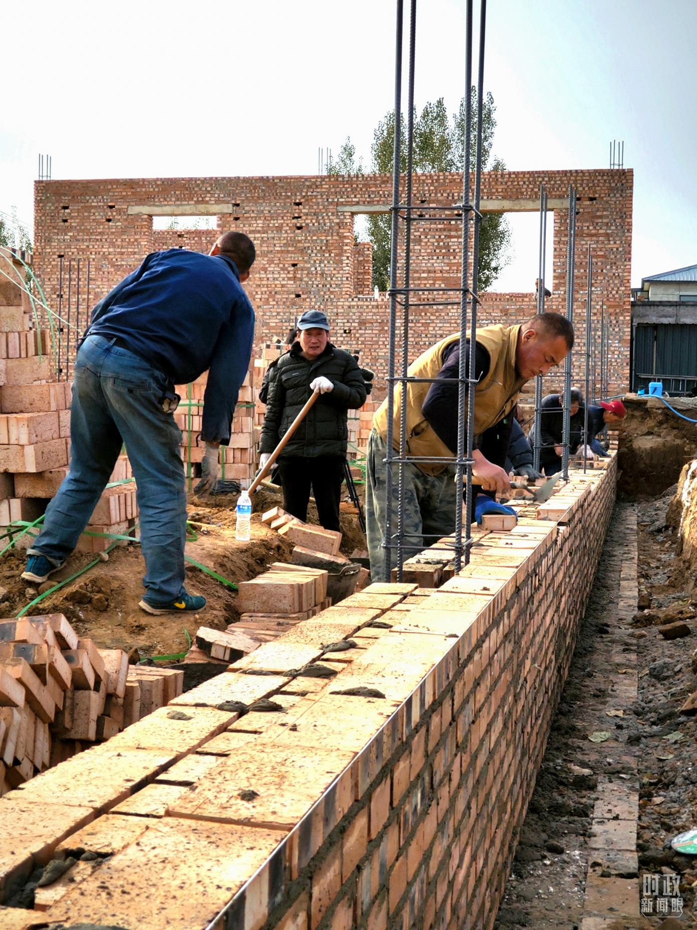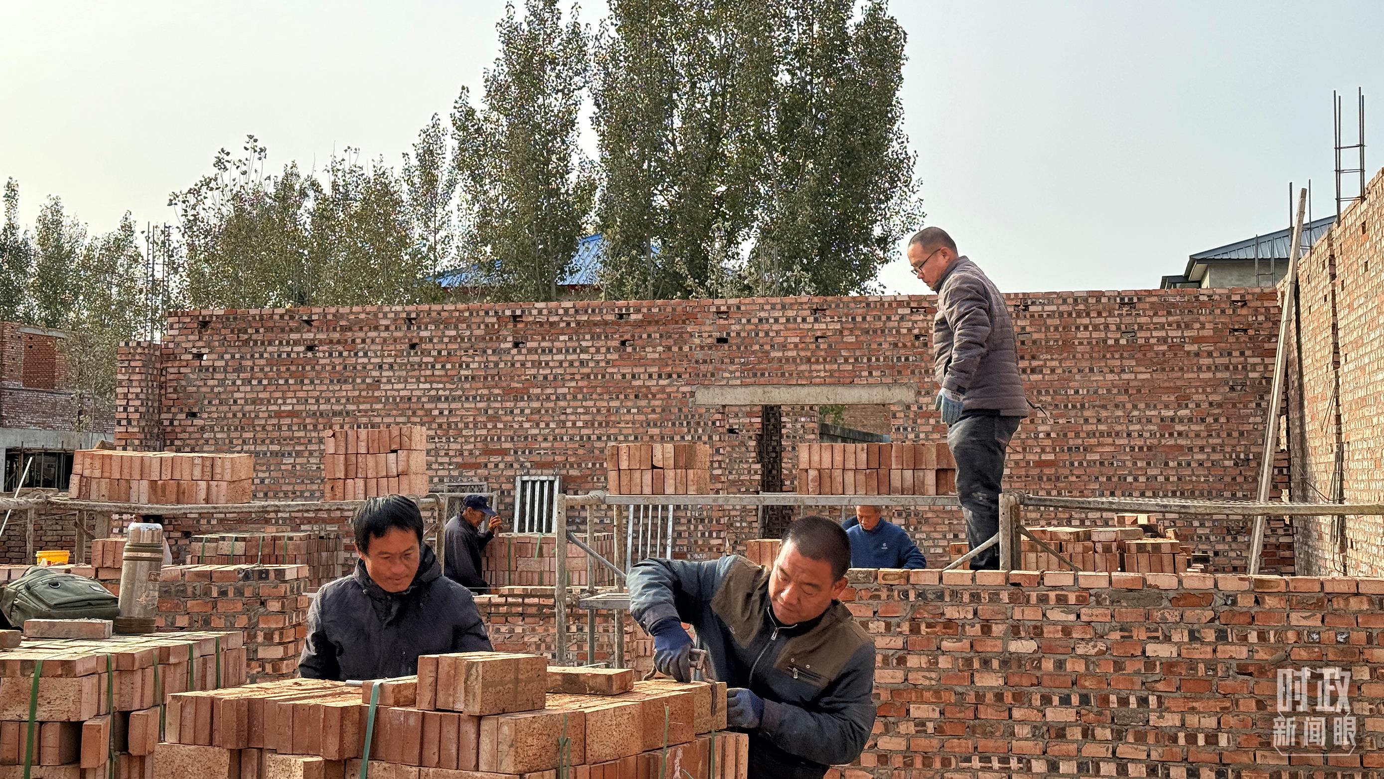 △ 刁窩鎮(zhèn)萬(wàn)全莊村村民正在重建房屋。(總臺(tái)央視記者李輝拍攝)