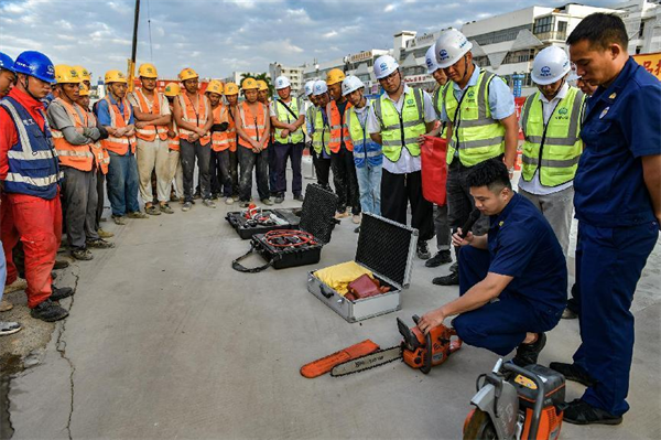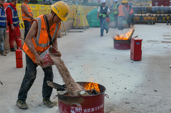 11月9日是第32個(gè)全國消防日。這次消防演練模擬火災(zāi)發(fā)生后如何使用干粉滅火器、干沙滅火,生活區(qū)宿舍起火員工俯身毛巾捂住口鼻逃生、昏迷受傷員工的轉(zhuǎn)移救治,以及消防救援機(jī)構(gòu)的介入救援等方面進(jìn)行演練。項(xiàng)目監(jiān)理單位點(diǎn)評時(shí)認(rèn)為,此次演練基本上是按照實(shí)景進(jìn)行的,進(jìn)一步增強(qiáng)了項(xiàng)目的應(yīng)急應(yīng)變、團(tuán)隊(duì)協(xié)調(diào)和處置保障能力,為應(yīng)對突發(fā)事件積累寶貴經(jīng)驗(yàn),保證安全生產(chǎn)工作全面落實(shí)。