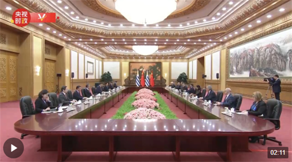 習(xí)近平指出,很高興同拉卡列總統(tǒng)先生見面,歡迎你對中國進行國事訪問。2023年是中烏關(guān)系史上特殊的一年,既是兩國建交35周年和烏拉圭加入共建“一帶一路”倡議5周年,也是你的父親、中國人民的老朋友拉卡列·埃雷拉前總統(tǒng)訪華30周年??偨y(tǒng)先生這次訪華具有重要意義。