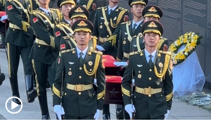 視頻:英雄回家 | 禮兵踢著無聲的禮步 護(hù)送志愿軍烈士棺槨緩緩行進(jìn)來源:中國新聞網(wǎng)