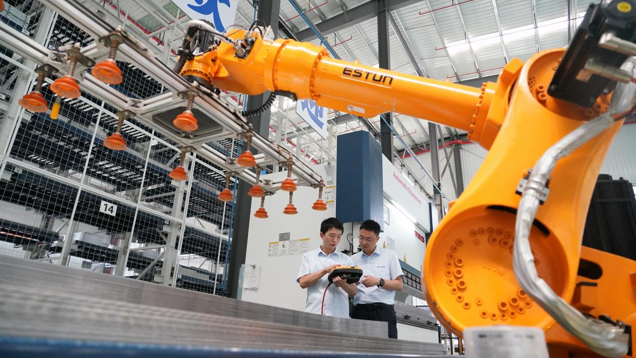 △2023年8月26日,在武漢光谷的一家長江電氣企業(yè)智能車間,工作人員正在操作智能機械臂。