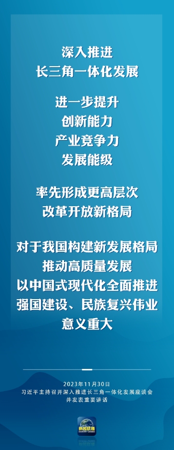 習(xí)近平強(qiáng)調(diào),深入推進(jìn)長三角一體化發(fā)展,進(jìn)一步提升創(chuàng)新能力、產(chǎn)業(yè)競(jìng)爭(zhēng)力、發(fā)展能級(jí),率先形成更高層次改革開放新格局,對(duì)于我國構(gòu)建新發(fā)展格局、推動(dòng)高質(zhì)量發(fā)展,以中國式現(xiàn)代化全面推進(jìn)強(qiáng)國建設(shè)、民族復(fù)興偉業(yè),意義重大。