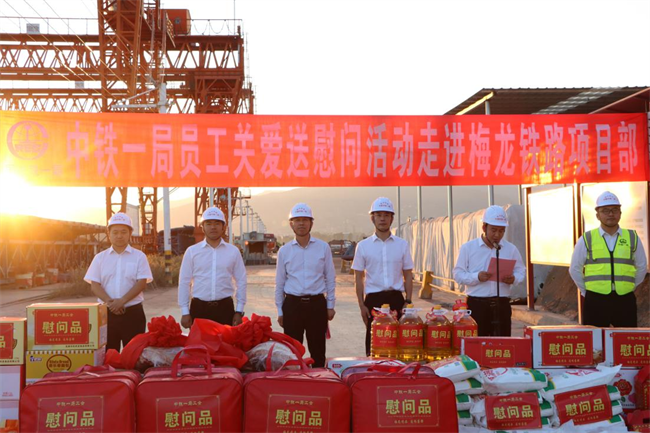 年終歲寒,元旦將至。為深入貫徹落實黨的二十大和中國工會十八大精神,把黨的關(guān)懷和公司工會的溫暖及時送到廣大職工群眾的心坎上。12月11日下午,中鐵一局“員工關(guān)愛送慰問”活動走進中鐵一局梅龍鐵路項目施工現(xiàn)場。中鐵一局黨委副書記、工會主席王新年,一公司總經(jīng)理韓勝,副總經(jīng)理、工會主席應(yīng)曉峰等共同為項目一線參建職工送去暖心關(guān)愛。