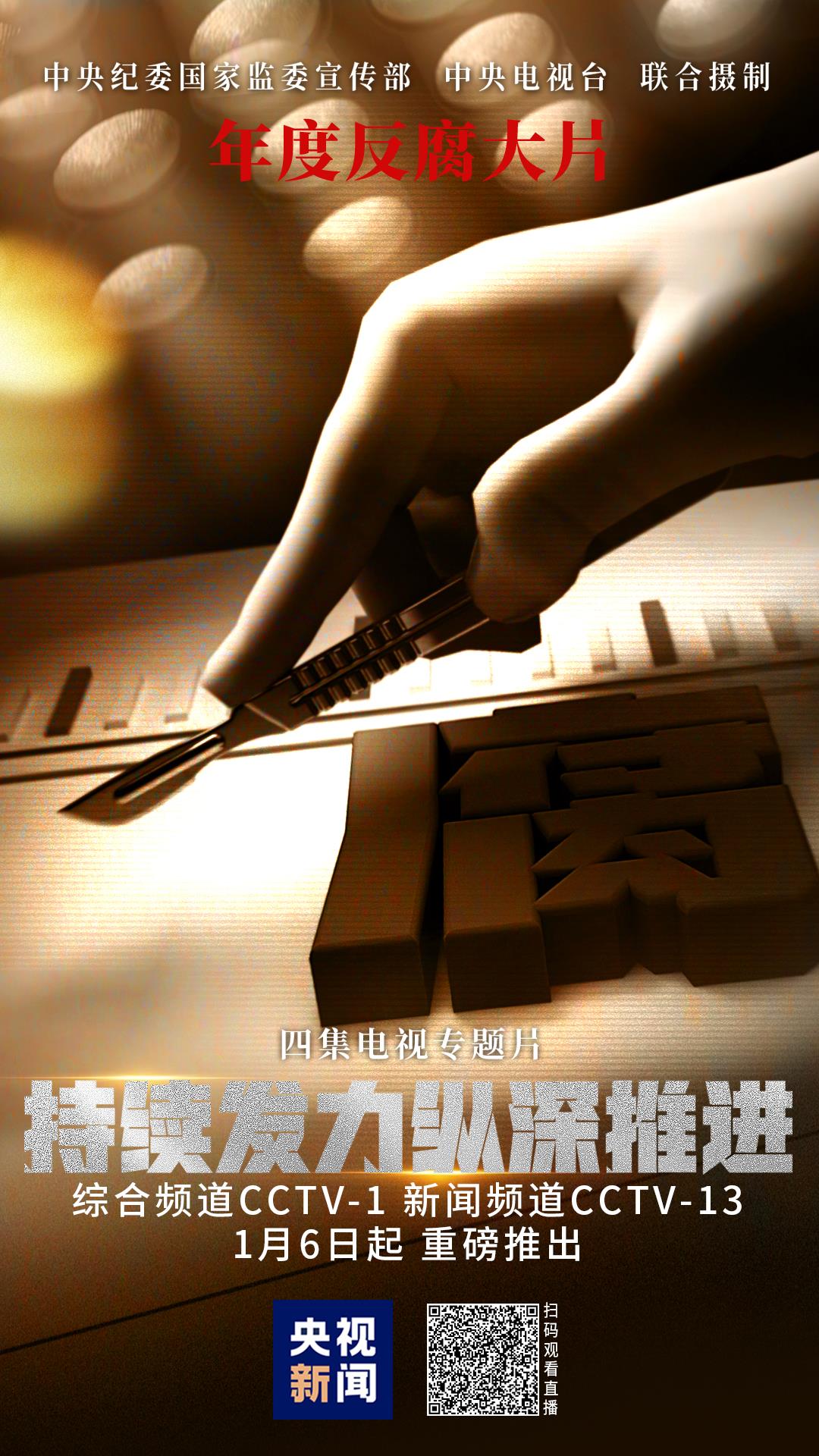 △由中央紀(jì)委國(guó)家監(jiān)委宣傳部與中央廣播電視總臺(tái)央視聯(lián)合攝制的年度反腐大片《持續(xù)發(fā)力縱深推進(jìn)》
