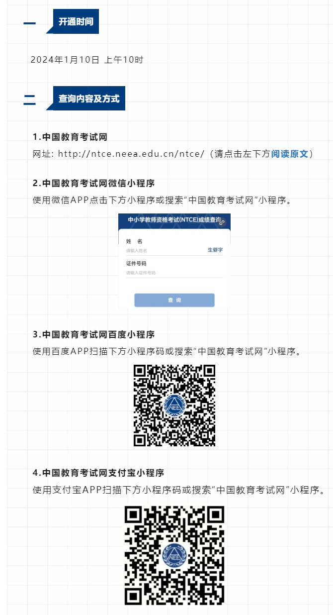 2023年下半年中小學教師資格考試(面試)結果、考試合格證明于2024年1月10日開通查詢,現(xiàn)將有關事宜通知如下: