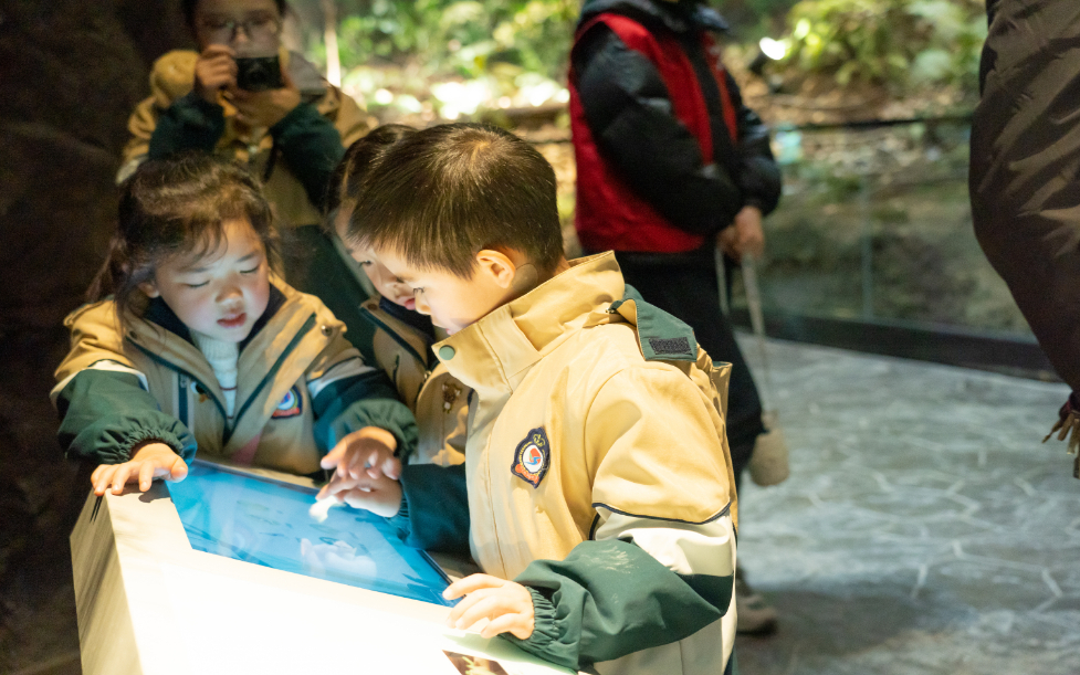 “媽媽,你看這棵樹(shù)上面也掛了牌子。”一大早,開(kāi)化縣實(shí)驗(yàn)幼兒園的小朋友們來(lái)到古田山探索自然的秘密。小朋友與家長(zhǎng)沿路而上,檵木、浙江大青、赤楊葉等植物被一一記錄在研學(xué)手冊(cè)上,有的小朋友還手持放大鏡觀察植物的脈絡(luò)紋理,將自己喜歡的樹(shù)葉記錄下來(lái),剪出形狀。“今天很開(kāi)心,我看到了喜歡的楊梅樹(shù),還撿到了鵝卵石。”一個(gè)小朋友興奮地歡呼到。結(jié)束室外活動(dòng),孩子們與家長(zhǎng)來(lái)到了錢江源國(guó)家公園科普館,近距離觀察野生動(dòng)植物標(biāo)本,學(xué)習(xí)錢江源國(guó)家公園動(dòng)植物相關(guān)知識(shí)。