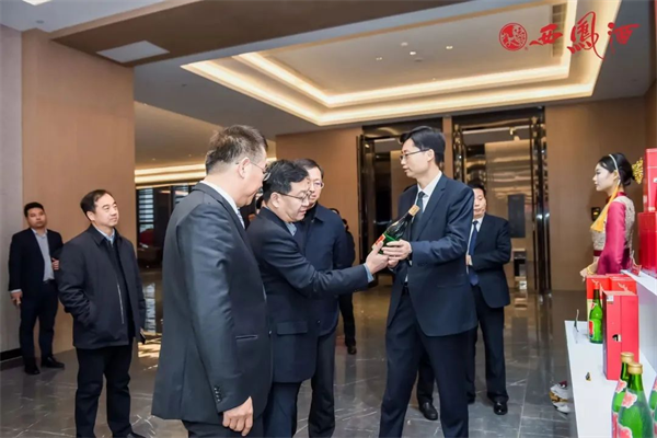 股份公司總經(jīng)理張周虎向與會領(lǐng)導(dǎo)介紹西鳳酒產(chǎn)品