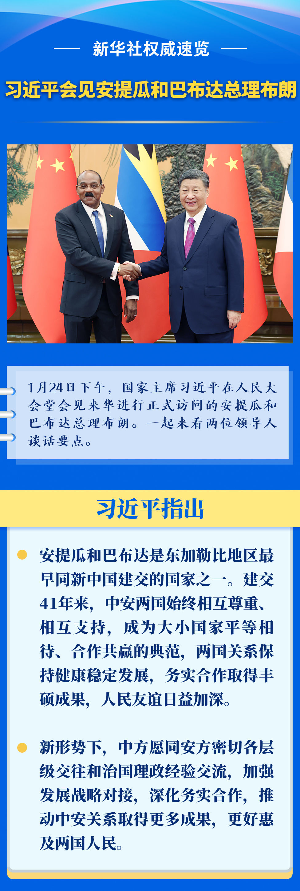 新華社權(quán)威速覽 | 習(xí)近平會(huì)見安提瓜和巴布達(dá)總理布朗