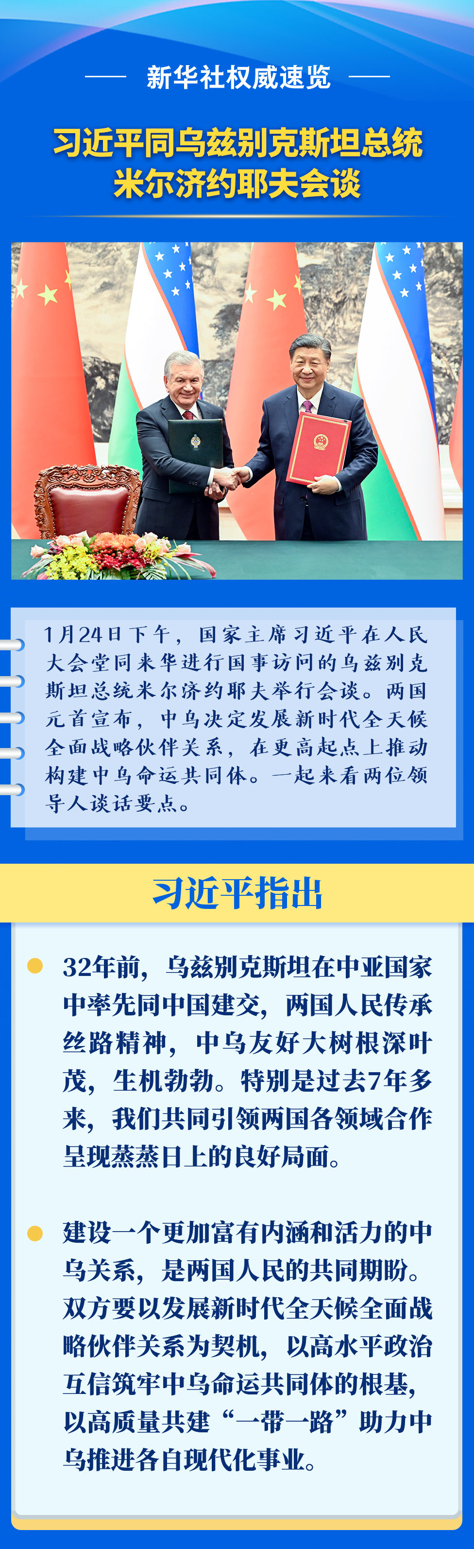 新華社權(quán)威速覽 | 習(xí)近平同烏茲別克斯坦總統(tǒng)米爾濟約耶夫會談