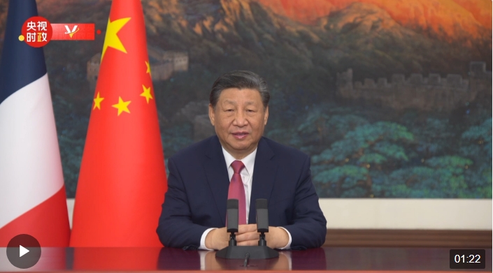 1月25日,中法建交60周年招待會在國家大劇院舉行,國家主席習(xí)近平發(fā)表視頻致辭。