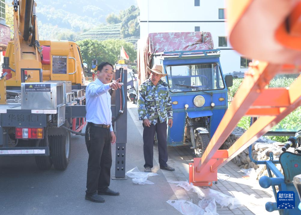 福鼎市赤溪村黨總支書記吳貽國(左)指導(dǎo)路燈安裝工作(2023年12月8日攝)。新華社記者 林善傳 攝