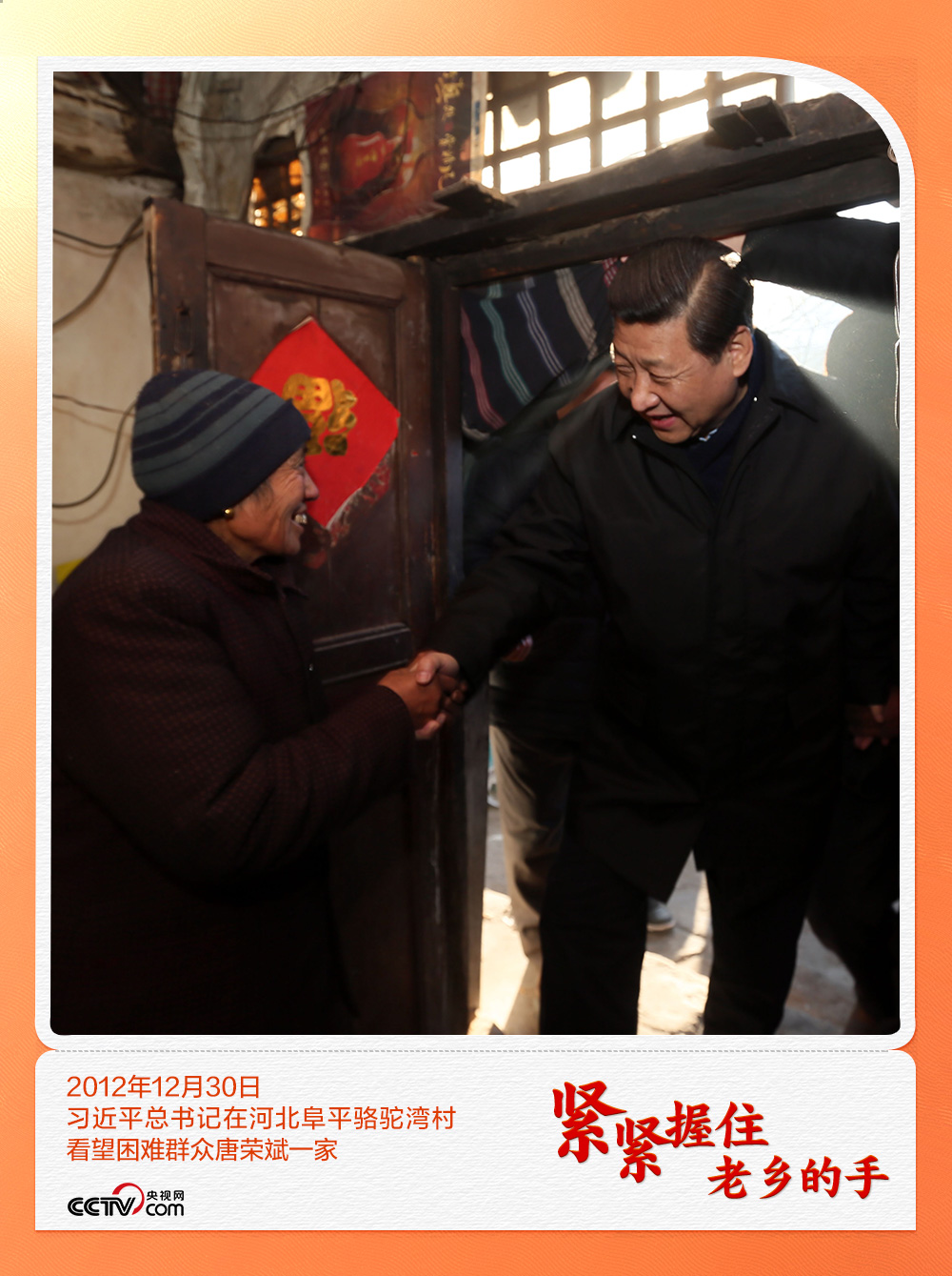 總書記緊緊握住老人的手:“黨的政策對老百姓好,才是真正的好。”