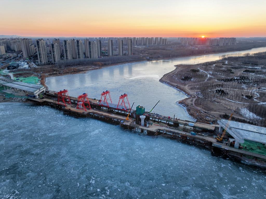 廠通路潮白河大橋項(xiàng)目建設(shè)現(xiàn)場(無人機(jī)照片)。新華社記者 邢廣利 攝