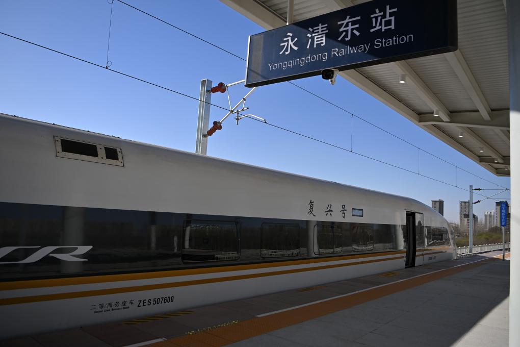一輛復(fù)興號動車組列車停靠在津興城際鐵路永清東站。新華社記者 李然 攝