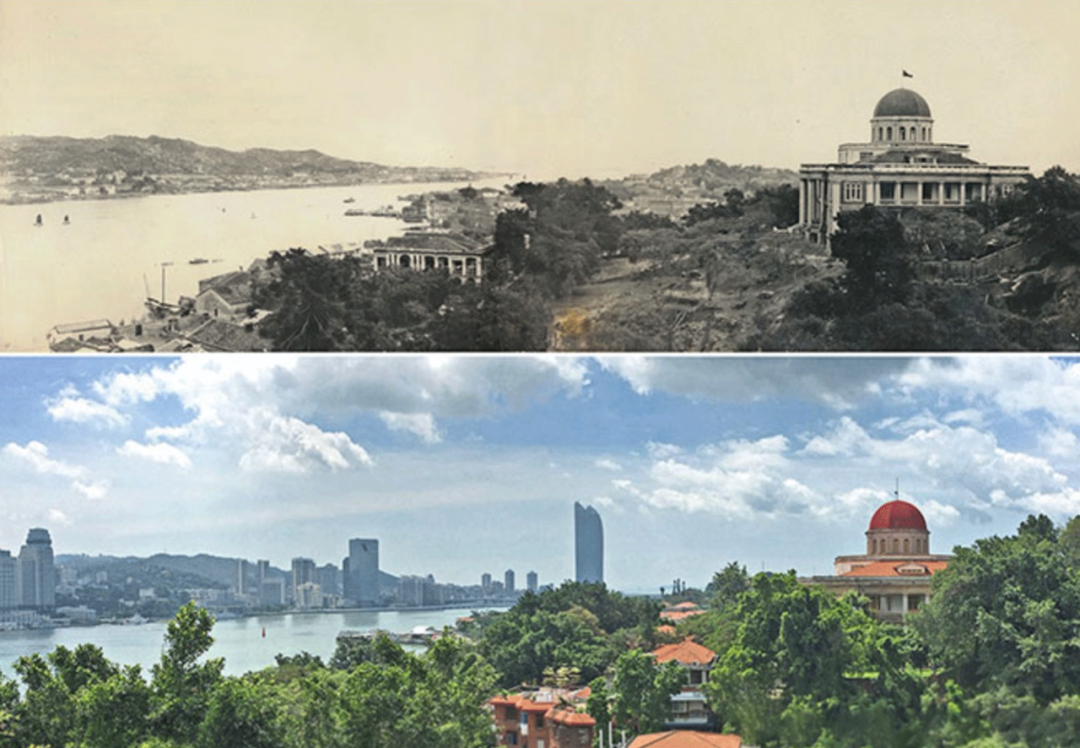 △鼓浪嶼-萬石山風景名勝區(qū)的鼓浪嶼“八卦樓”一帶今昔對比