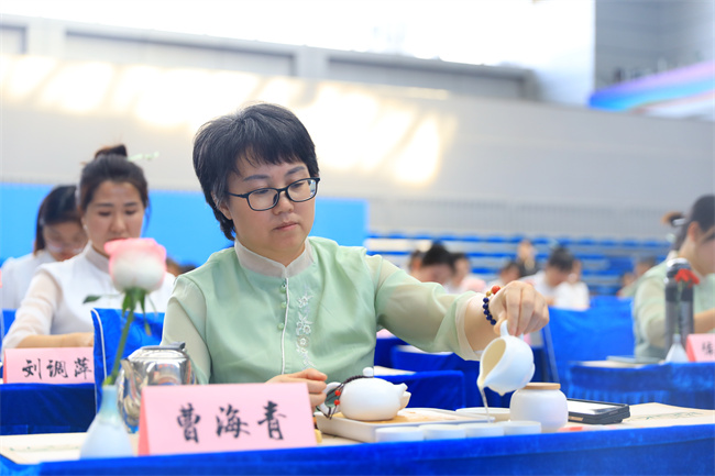 活動(dòng)開始,12名女職工在悠揚(yáng)的古箏樂聲中展示了茶藝表演,示范了行禮入座、溫杯燙盞、賞茶投茶、浸潤(rùn)搖香、洗茶沖泡、分杯奉茶,每一個(gè)步驟都頗具韻味,每一個(gè)環(huán)節(jié)都充滿儀式感,讓在場(chǎng)的每個(gè)人都充分感受到茶藝的魅力。