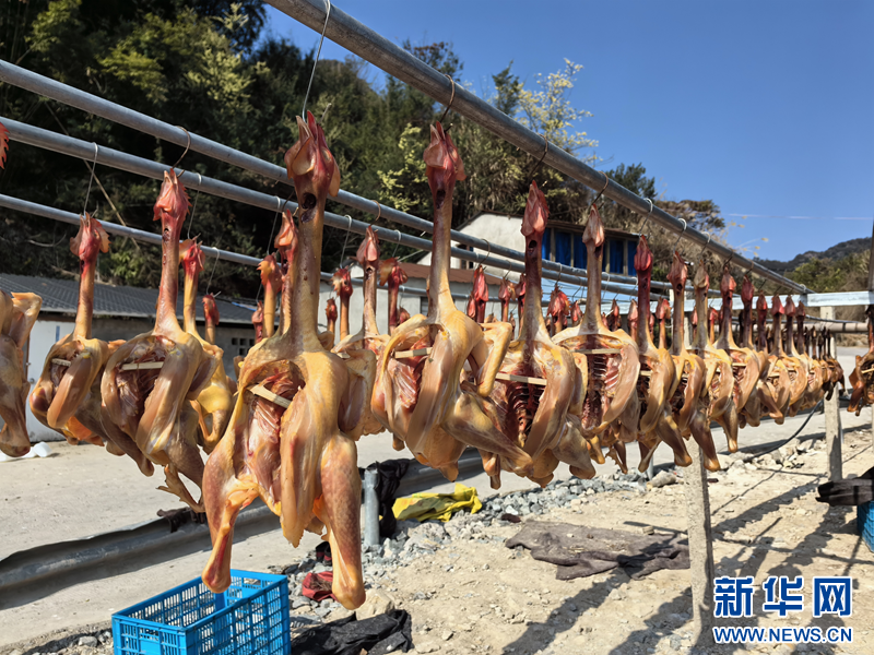 “我們的雞是石垟山上放養(yǎng)的三黃雞,熏制手法也是采用藤橋傳統(tǒng)技藝,很受消費者喜愛。”葉林國指著成排晾曬好的熏雞笑著說,“今年天公特別作美,不僅日曬充足,風(fēng)也足夠大,這樣環(huán)境下晾曬的熏雞風(fēng)味比往年更勝幾分,最近訂單多到都快忙不過來了。”
