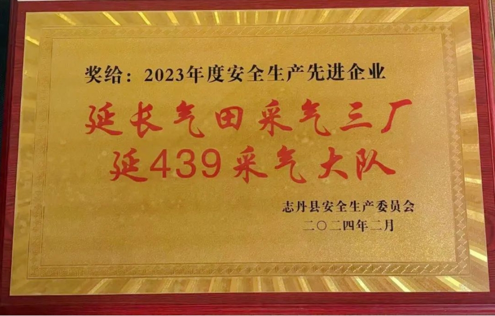 西部決策網(wǎng)訊 近日,從志丹縣安全生產(chǎn)委員會傳來喜訊,延439采氣大隊被授予志丹縣“2023年度安全生產(chǎn)工作先進企業(yè)”榮譽稱號。