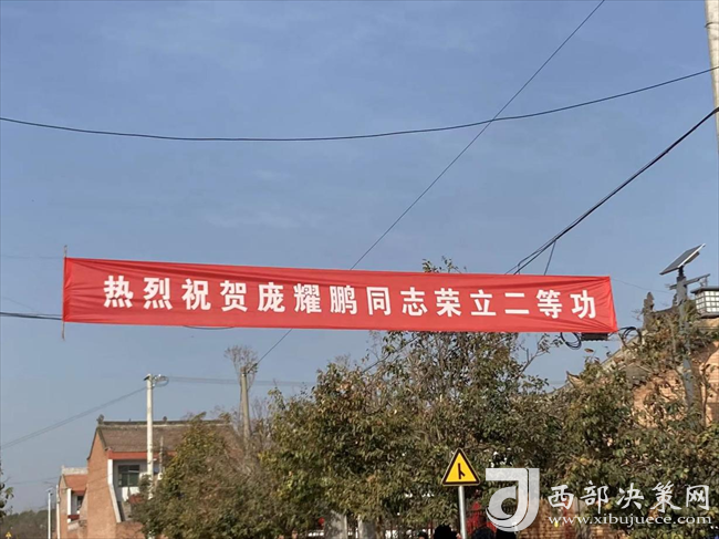 在喜慶的鑼鼓聲中,在現(xiàn)場父老鄉(xiāng)親的見證下,報(bào)喜團(tuán)成員抬著熠熠生輝的“二等功臣之家”的牌匾,懸掛起“熱烈祝賀龐耀鵬同志榮立二等功”的橫幅,來到龐耀鵬家門口,為龐耀鵬母親、岳父、岳母佩戴綬帶,頒發(fā)喜報(bào),送上牌匾和獎(jiǎng)勵(lì)金。座談交流中,報(bào)喜團(tuán)詳細(xì)了解了龐耀鵬家屬的身體和生活狀況,感謝他們?yōu)樽鎳囵B(yǎng)了優(yōu)秀的軍事人才,鼓勵(lì)他們一如既往支持龐耀鵬安心部隊(duì)服役,建功軍營,爭取再立新功,為家鄉(xiāng)和國防事業(yè)增光添彩。