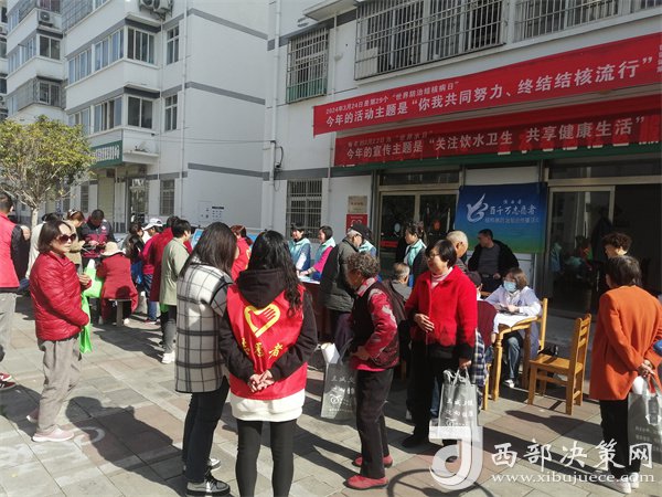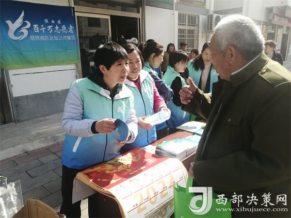 深入開(kāi)展肺結(jié)核防治知識(shí)進(jìn)社區(qū)活動(dòng)。3月24日,縣衛(wèi)健局、疾控中心、縣人民醫(yī)院、縣紫柏衛(wèi)生院聯(lián)合在城關(guān)社區(qū)開(kāi)展了結(jié)核病和飲水安全宣傳活動(dòng)。活動(dòng)期間,醫(yī)務(wù)人員為群眾免費(fèi)測(cè)量血壓、開(kāi)展義診咨詢,現(xiàn)場(chǎng)志愿者從結(jié)核病的傳播途徑、防控措施及國(guó)家的優(yōu)惠政策方面,對(duì)前來(lái)咨詢的群眾進(jìn)行了詳細(xì)的解答,為來(lái)往居民介紹了結(jié)核病、飲水安全小知識(shí)?;顒?dòng)當(dāng)天,共計(jì)發(fā)放肺結(jié)核宣傳年畫200余張,宣傳冊(cè)、宣傳彩頁(yè)共計(jì)10余種500余份,圍裙、手提袋300余個(gè),為群眾提供咨詢服務(wù)100余人次。
