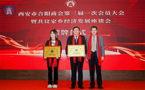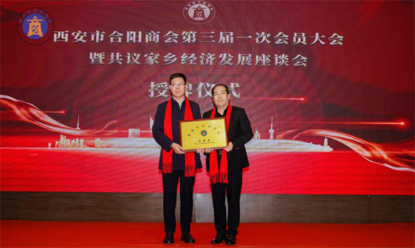 西安市合陽商會(huì)會(huì)長(zhǎng)賈申龍先生和監(jiān)事長(zhǎng)劉自力先生為副會(huì)長(zhǎng)單位授牌。